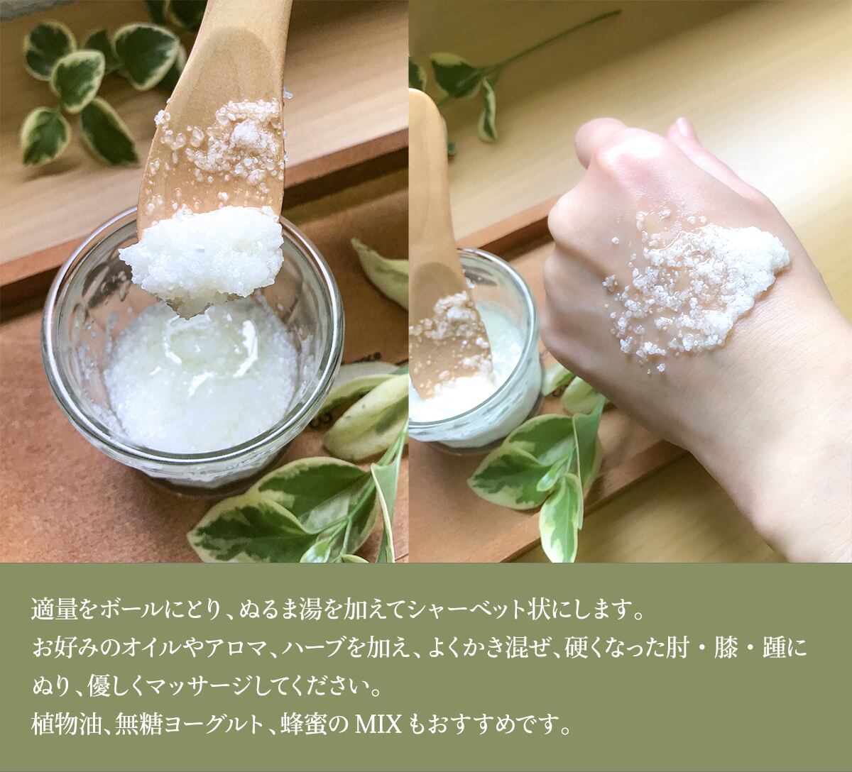 理想の肌を手に入れる手作りのボディスクラブとしても、入浴剤としてもご利用いただけます。